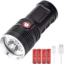 Lampe de Poche Torche LED Rechargeable, Puissante 3 * XHP50 LED Tactique Lampe Torche 8000 Lumens, 3 Modes étanche pour Camping, Randonnée, Urgence (Piles 4 * 18650 Incluses)