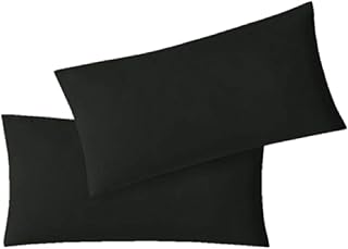 EXKLUSIV HEIMTEXTIL Housse de taies d'oreiller en Jersey 2 Pack économique avec Fermeture éclair de Haute qualité 40 x 145 cm Noir