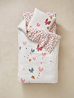 Vertbaudet Parure Housse de Couette + taie d'oreiller Enfant Polycoton FLOR'AILES Blanc imprimé 140X200 - TAIE 63X63