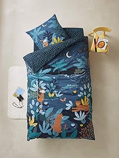 Vertbaudet Parure Housse de Couette + taie d'oreiller Enfant Jungle Night Bleu/Multicolore 140X200 - TAIE 63X63