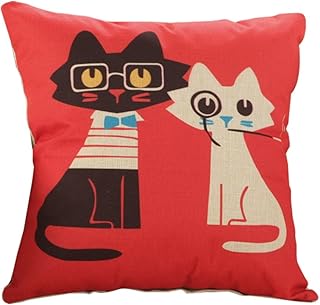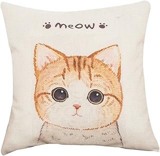 Bigboba Lin Housses de coussin Lovely Cat Motif Housse de coussin Canapé lit Décoration de maison Taie d'oreiller 45*45 cm 45,7 x 45,7 cm, Lin, D, 45*45cm