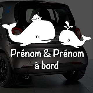 Sticker bébé à bord pour voiture PRENOM Personnalisé Baleine 20 cm Blanc - Anakiss