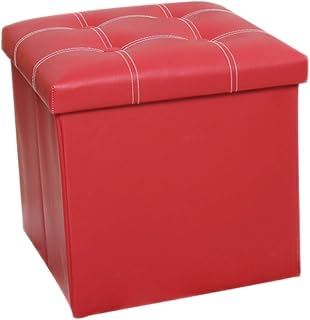 Pliable Siège boîte de Rangement Cube, Cuir PU Tuffeté Coffre de Rangement Tabouret Pouf Petit Pliant Repose-Pieds Boite de Rangement Jouets avec Couvercle-Rouge