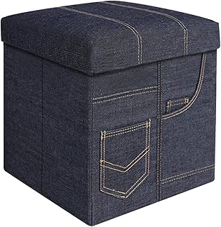 BRIAN & DANY Pouf Coffre de Rangement Tabouret Pliant Pouf de Pliable Cube, 30 x 30 x 30 cm, Denim