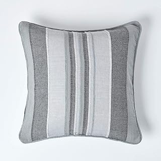 HOMESCAPES Housse de Coussin à Rayures Morocco Gris, Housse de Coussin 45x45 cm