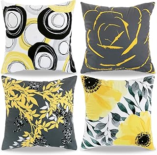 Allmarkhomes Housse de Coussin 4 Housse Coussin Plaid Peluche Courte Taie Oreiller Lin Fleur Housse de Coussin Jaune et Gris 45X45 cm