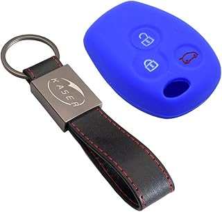 kaser Housse étui en Silicone pour Clé Renault – Coque Cover Porte-Clés 2 Boutons pour Dacia Clio Megane Modus Espace Kangoo Twingo Protection Télécommande Voiture (Bleu)