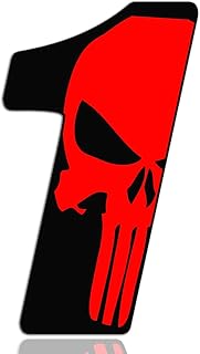 Biomar Labs® 1 x PVC Autocollant Punisher Rouge Sticker Départ Numéro 1 Course Racing Voiture Auto Motocross Motorsport Tuning N 351