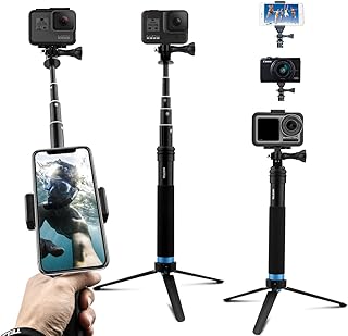 AuyKoo Extensible GoPro Perche à Selfie Portable étanche, Télescopiques Voyage Monopode Support de Fixation Trépied pour GoPro Fusion GoPro Hero7 Black/Hero6/Hero 5/ Hero8 Hero 9 Black