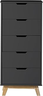 VS Venta-stock Chifonnier Miranda avec 4 tirois en Couleur Gris Anthracite, Pieds et façades en Bois Naturel