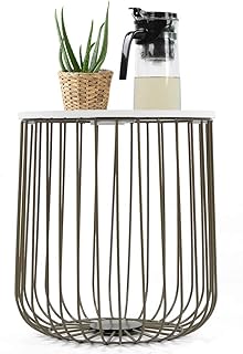 IDIMEX Lot de 2 Tables d'appoint ERRANO Tables à café Tables Basses Rondes Bouts de canapé Design Vintage Industriel, Rangement Panier en métal avec Plateau Amovible en MDF décor marbre Blanc