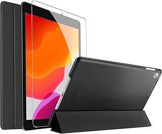 ProCase Coque + Flim d’ Écran pour iPad 10.2', iPad 8/7ème, en 2020/2019, A2270 A2428 A2429 A2430 A2197 A2198 A2200, Étui Housse de Protection Anti-Chute, Rabat Magnétique Stable-Noir