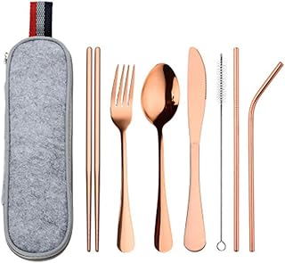 Hava Kolari Outdoor Travel Stainless Steel Camping Cutlery with Felt Bag, 7 Piece Cutlery Set with 2 Spoons, Knife, Fork, 2 Straw, Cleaning Brush (Rose Gold) : Amazon.ae: Sporting Goods desertcart is the best online shopping platform in the Mauritius where you can choose to buy from the largest selection of Hava Kolari products. desertcart Mauritius delivers the