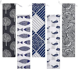 5 Pièces Étui de Transport en Paille, Sac de Voyage pour Pailles en Acier Inoxydable, Pailles en Verre, Pailles en Silicone, Pailles en Bambou, Couverts, Brosse de Nettoyage (Petit)