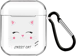 VerteLife Coque en Silicone Protecteur pour Apple AirPods 1 et 2 Transparent Motif de Dessin Animé Drôle Mignon Housse de Protection Étui Résistant aux Chocs avec Mousqueton pour AirPods, Chaton