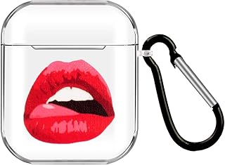 VerteLife Coque en Silicone Protecteur pour Apple AirPods 1 et 2 Transparent Motif de Dessin Animé Drôle Mignon Housse de Protection Étui Résistant aux Chocs avec Mousqueton pour AirPods, Lèvres