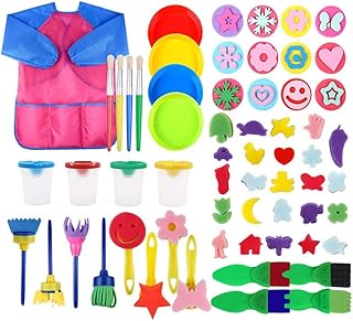 Kit de 61 pinceaux de peinture en éponge lavables pour enfants, pinceaux de peinture, pinceaux de formes de dessin, pinceaux artisanaux avec bols de peinture et 1 tablier de peinture imperméable