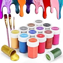 Gifort Peinture Acrylique Métallique (20 ML), Kit de 14 Couleurs Peintures Non Toxique avec 3 Pinceaux, Riches en Pigments, pour Artistes Enfants, Idéal pour la peinture sur toile et l'artisanat