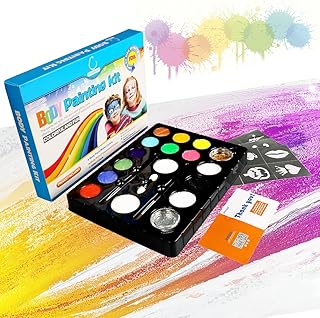 Visage Peinture Enfants, Peinture corporelle Kits de peinture faciale Peinture Huile non toxique, Idéal pour Noël, Fêtes d'anniversaire 13 Couleur, 2 paillettes en poudre, 2 stylos