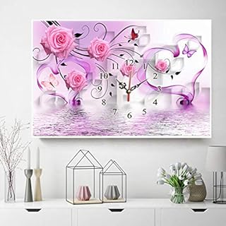 5D Diamant Peinture kit DIY Complet Round Drill Strass Broderie Art Artisanat Décoration Murale Diamond Painting Point De Croix, Rose et horloge murale (rose) 60 * 40CM