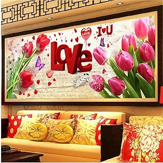DIY 5D Diamant Painting pour Décoration Murale Maison Cristal Strass Broderie Mural Décor Diamond Décoration Peinture Kits Complet Love Diamond Painting Kit pour Chambre Salon Cadeau