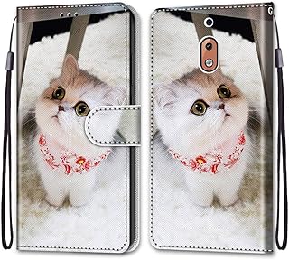 i-Case Pochette Coque pour Nokia 2.1 Étui en Cuir Flip Lirves PU avec TPU Silicone Antichoc Housse Support Portable Wallet Élégant Étui pour Nokia 2.1 5.5',Écharpe Rouge Chaton