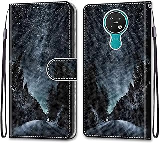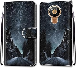 i-Case Pochette Coque pour Nokia 5.3 (2020) Étui en Cuir Flip Lirves PU avec TPU Silicone Antichoc Housse Support Portable Wallet Élégant Protection Étui pour Nokia 5.3 6.55',Route de Nuit Noire