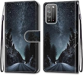 i-Case Pochette Coque pour Honor X10 5G Étui en Cuir Flip Lirves PU avec TPU Silicone Antichoc Housse Support Portable Wallet Élégant Protection Étui pour Honor X10 5G,Route de Nuit Noire