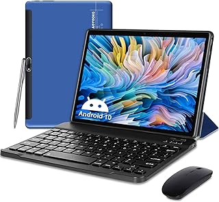 Tablette Tactile 10 Pouces 4G LTE, Android 10.0 Certifié par Google GMS 4Go RAM+64/128 Go R0M Tablette PC 1,6 GHz | 5+8MP | WiFi | Bluetooth | GPS | Type-c avec Clavier et Souris |Couverture (Bleu)