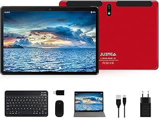 Tablette 10 Pouces Android 10.0 Tablettes Ultra-Portable - RAM 4 Go | 64 Go Extensible (Certification Google GMS) -JUSYEA - Batterie 8000mAh - WiFi - Souris | Clavier et Plus - Rouge